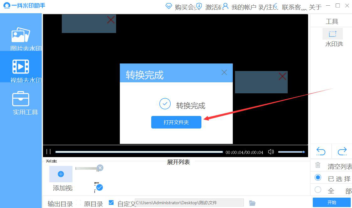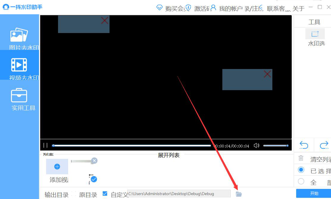 6、输出目录设置好了,我们点击界面右下方的“开始”按钮,一抖水印助手便开始去除视频的水印。