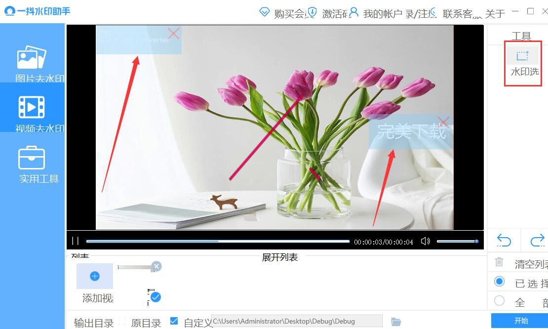 想要去除视频的水印,就可以使用一抖水印助手。它不仅操作简单,而且能去除视频中的多处水印,轻轻松松就能获得干干净净的视频。