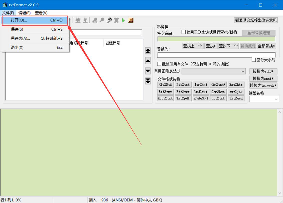 1、首先,我们打开txtFormat软件,点击界面“文件”菜单中的“打开”选项。