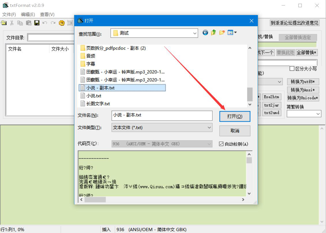 2、然后,在弹出的窗口中,我们选择需要批量替换内容的txt文档,并点击“打开”按钮,将其导入软件。