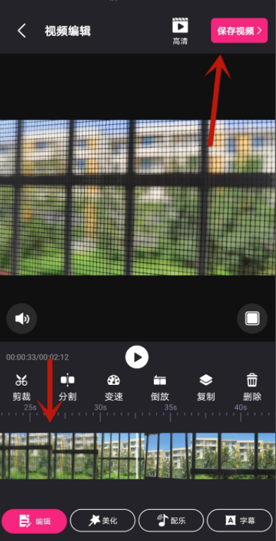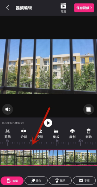 视频片段复制之后,就会在前面增加一个视频,最后点击【保存视频】即可。