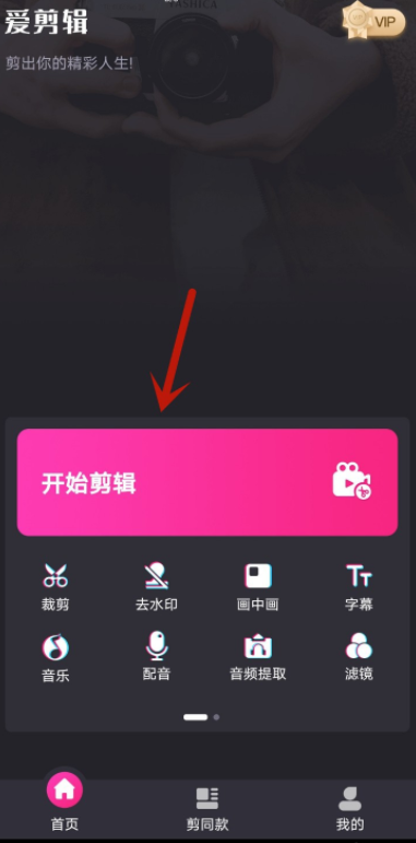 在手机中打开爱剪辑APP,进入界面,点击【开始剪辑】选项,