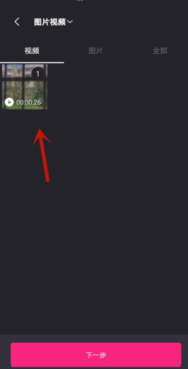进入图库,点击【视频】,选择一个短视频素材,进入下一步,