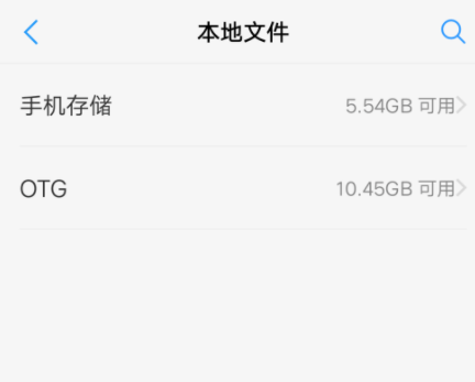 现在拿出U盘,将其插入手机的USB接口,在桌面点击打开【文件管理】,在文件管理窗口点击【本地文件】,可以看到除了手机本身的手机存储之外,还拥有了OTG存储,我们可以根据需要转存手机上的文件。
