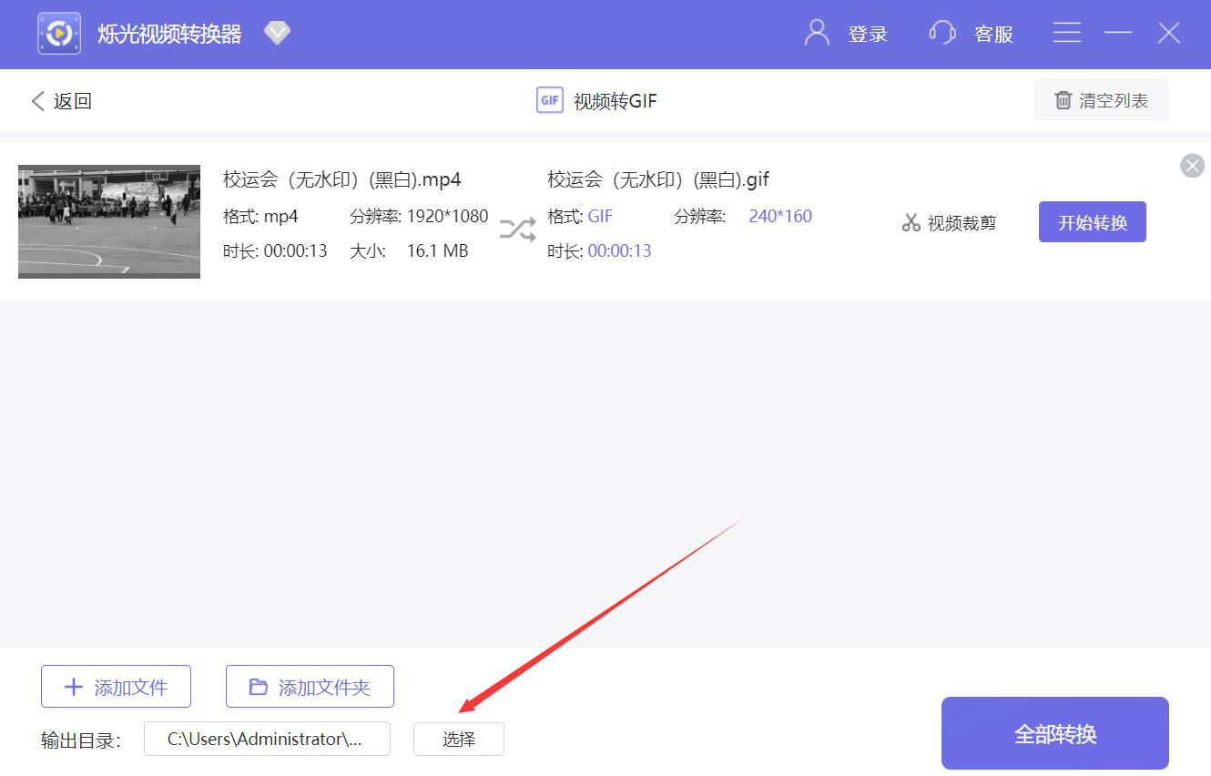 4、如果视频转GIF后的文件输出目录需要更改,我们就点击烁光视频转换器界面下方的“选择”按钮。