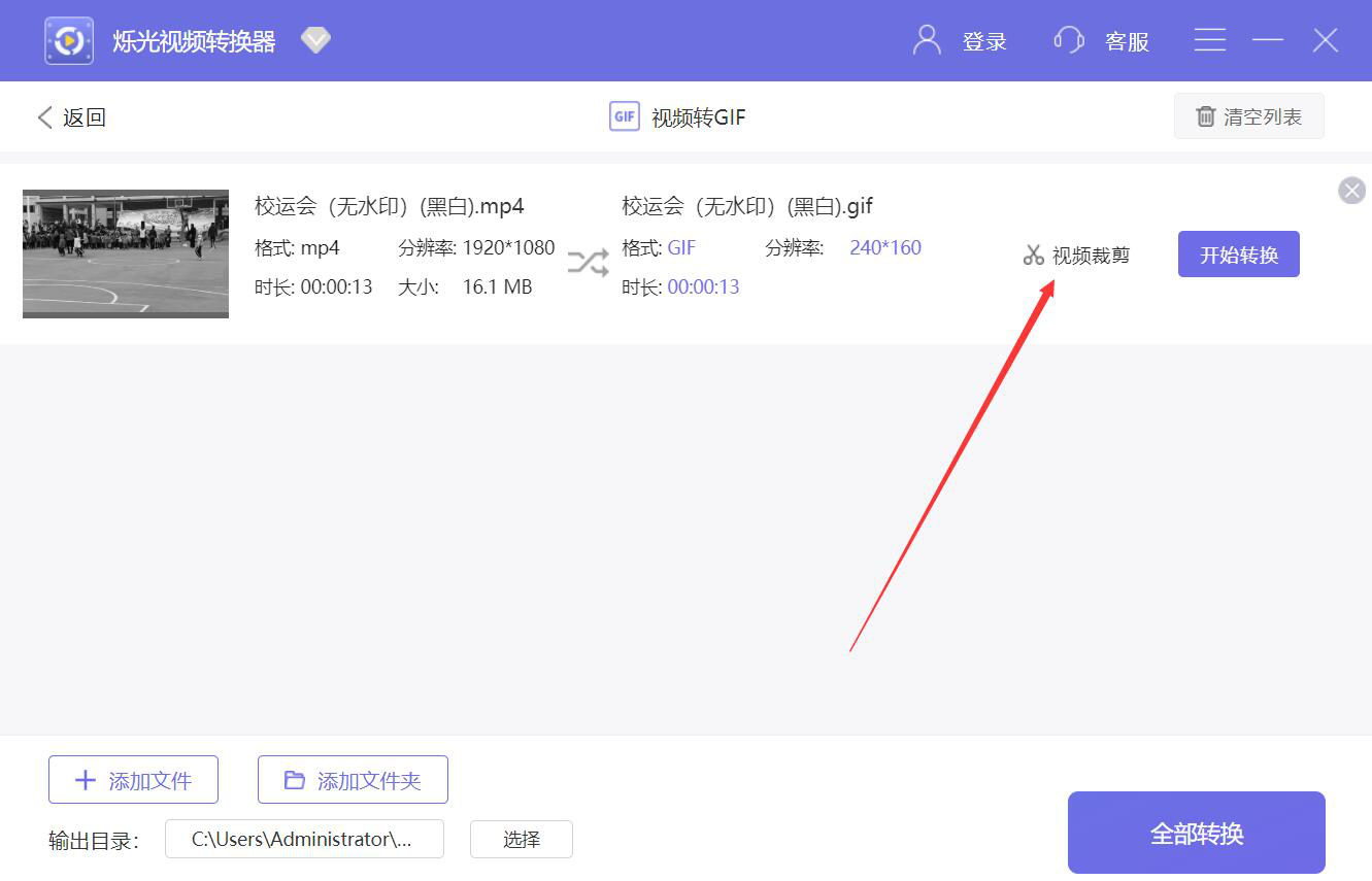 想要将视频转换为GIF动图,一点都不困难,我们可以用烁光视频转换器来实现。不过,为了避免GIF文件过大,我们截取的视频片段不宜过长。