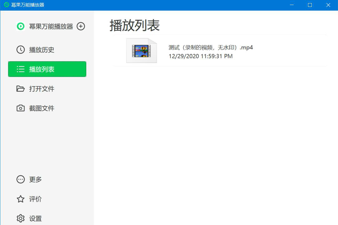4、此外,当我们想看回之前用幂果万能播放器播放的其他音视频时,就可以在界面中切换至“播放列表”,可以看到它播放过的所有音视频。
