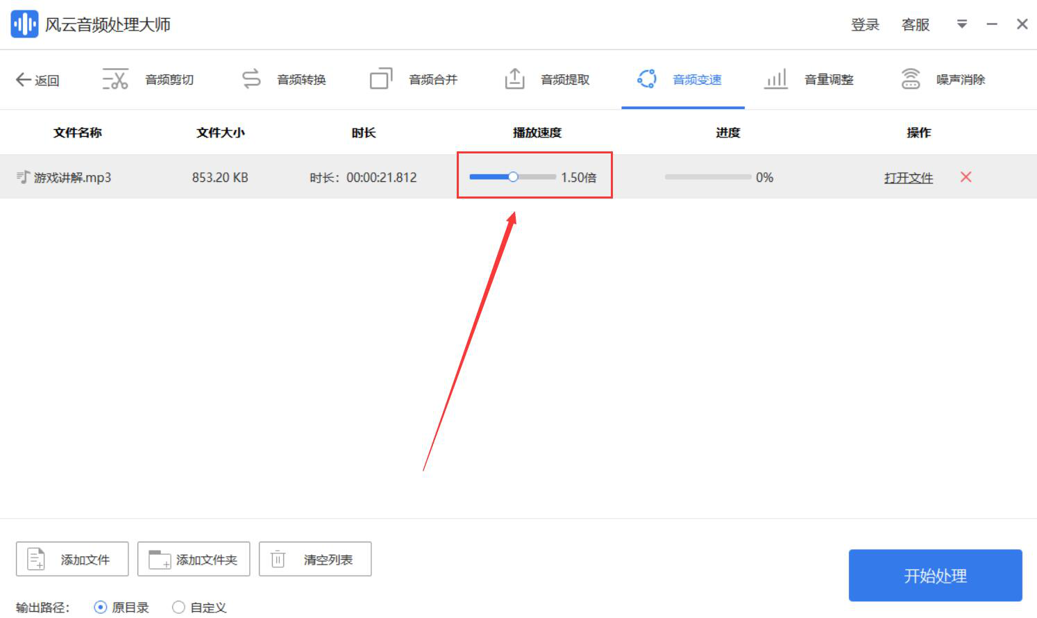 风云音频处理大师如何调整音频播放速度?