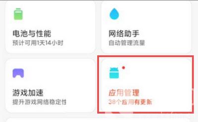 6.随后找到安全中心的【应用管理】一项,进入设置手机应用各个权限,找到【权限管理】进入;
