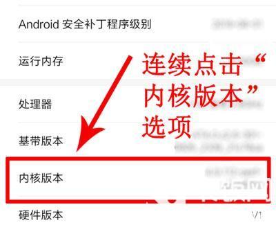 3.随后在手机参数中,找到【内核版本】,连续点击内核版本选项,根据“只需X步操作即可进入CIT”点击;
