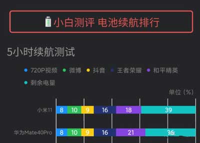 华为Mate 40Pro使用的是1344P+90Hz屏幕续航表现不及小米11优秀。