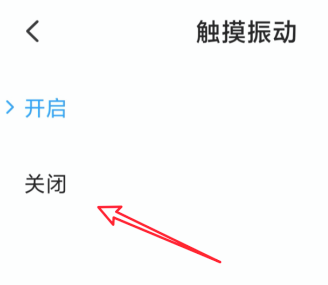 5、在震动界面中点击触摸震动,点击进入后点击关闭即可。