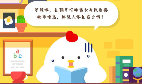 问题:小鸡宝宝考考你,开灯睡觉会对我们的身体造成伤害吗?