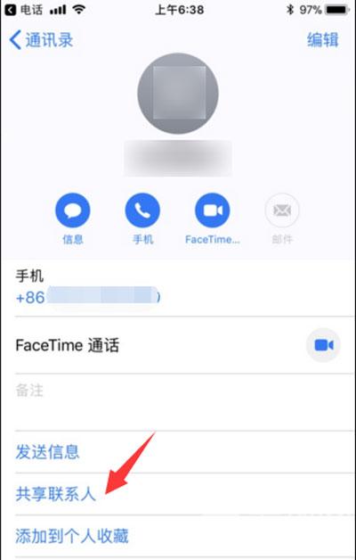 7、以隔空投送联系人为例,在通讯录中打开需要共享的联系人,选择【共享联系人】;