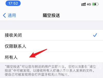 5、以【所有人】为例,勾选了之后,即可开启隔空投送;