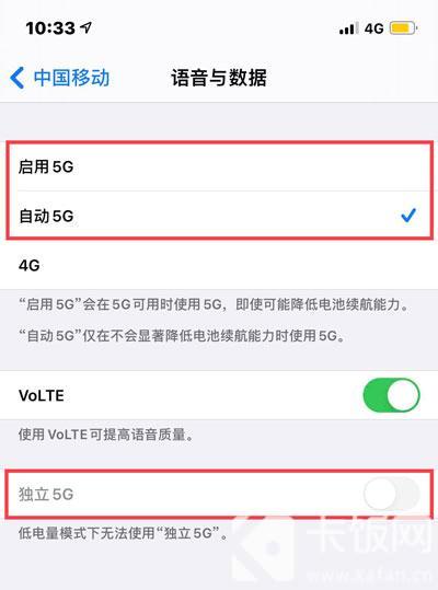 6、当然大家也可以选择开启下方的【独立5G】功能,开启5G之后,开启移动数据,就可以进入5G模式;