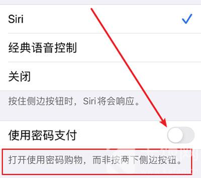 4、最后,选择侧边按钮设置最下方的【使用密码支付】,关闭右侧滑块;