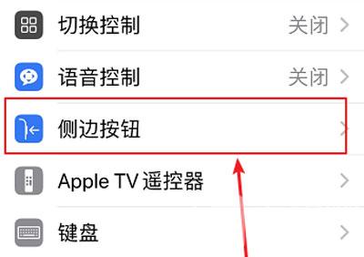 3、进入辅助设置后,往下滑动页面,找到【侧边按钮】设置;