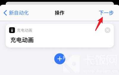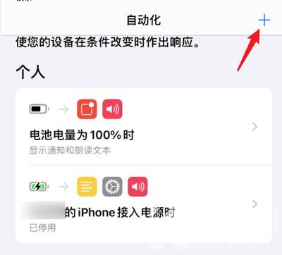 4、选择充电动画之后,需要使用【快捷指令】App执行充电动画,点击右上角的【+】按钮;