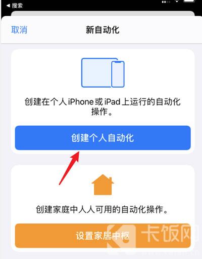 5、随后选择上方的【创建个人自动化】一项选项,创建新的快捷指令;