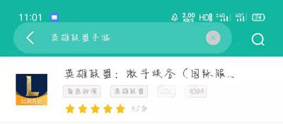 2、然后在搜索框中,输入【英雄联盟手游】,并搜索,点击搜索结果中的英雄联盟手游进入;