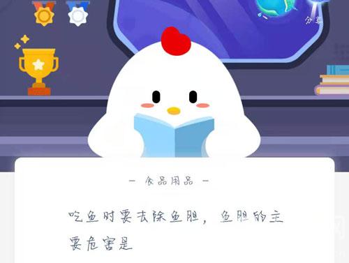 吃鱼时要去除鱼胆,鱼胆的主要危害是?在支付宝蚂蚁庄园每日一题中,今日问题是问吃鱼时要去除鱼胆,鱼胆的主要危害是?那答案是什么呢,鱼胆有毒吗?鱼胆为什么不能吃?为什么要去掉鱼胆?下面就和小编一起来看看吧!