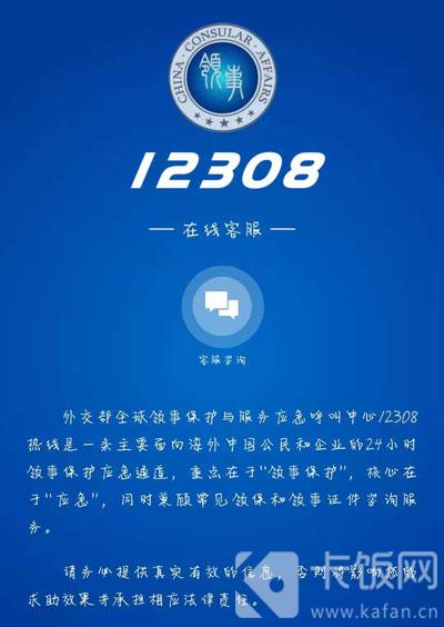 同时我们还可以通过【领事直通车】微信公众高、12308微信小程序、外交部12308手机客户端一键网络呼叫;