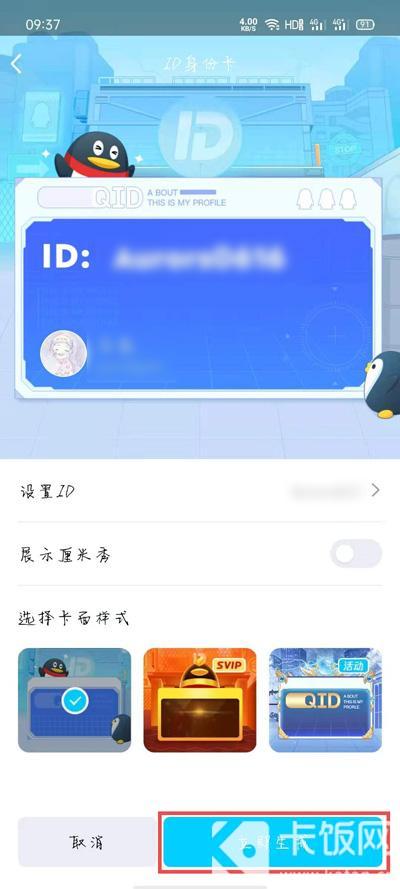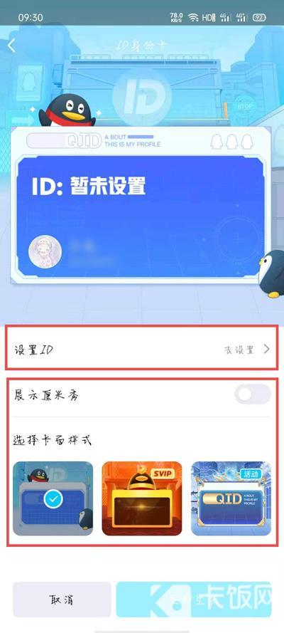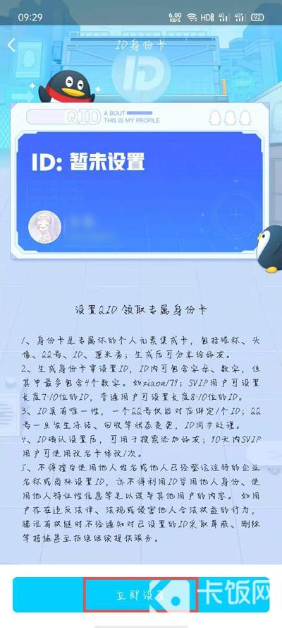 6.进入ID身份卡页面后,选择QID展示卡面样式、厘米秀等等,点击【设置ID】;