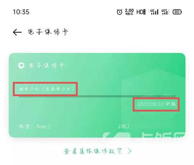 4、电子保修卡:在oppo手机自带的“我的oppo”中,有一个电子保修卡功能,系统根据当前手机机身数据,自动查询并绑定电子保修卡,通过电子保修卡查询保修期。