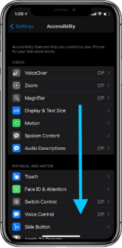 3、进入到辅助功能后,上划找到选择「听觉」栏的「音频/视觉」功能,点击进入到界面中;