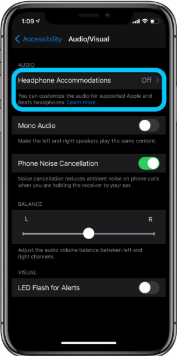 4、在音视频的功能界面中,用户需要选择并打开「耳机调节」功能,进入到耳机调节界面;