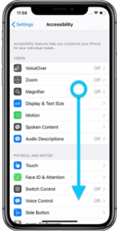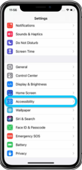 2、在设置界面中上划,在所有的设置选项中找到【辅助功能】然后点击打开【辅助功能】,进入辅助功能界面;