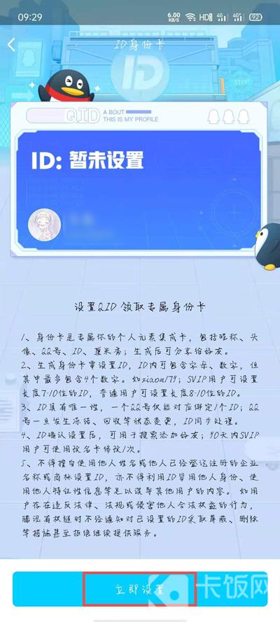 5.进入ID身份卡介绍页面后,可以查看QID功能是什么,如何使用,然后再点击下方的【立即设置】 ;