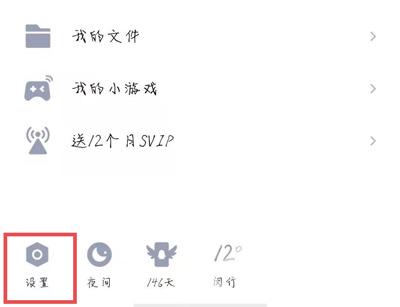 2.在菜单页面,选择左下角的【设置】按钮,进入QQ设置;
