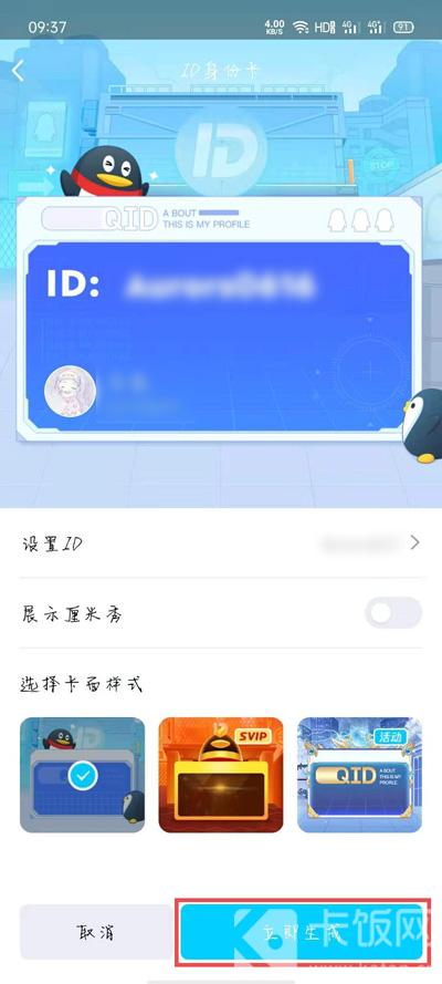 9.返回ID身份卡之后,点击右下角的【立即生成】按钮,生成自己的ID身份卡;