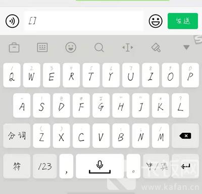 2、随后,在聊天页面点击下方的输入框,唤起手机键盘,找到中文符号下方的“ [] ”符号(也可复制该符号使用);