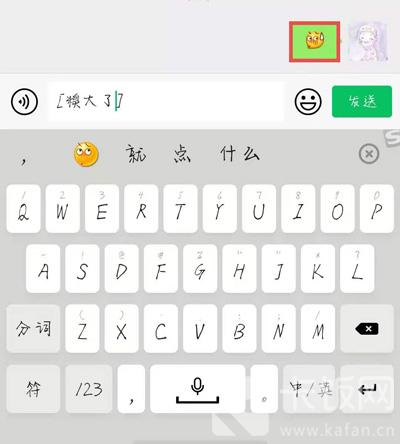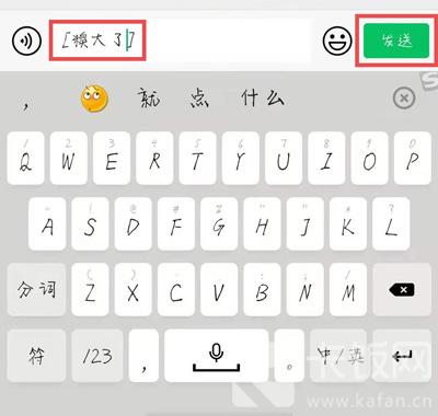 4、然后点击右侧出现的【发送】按钮,将该表情包文字代码发送;