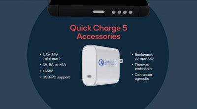 此前高通 QuickCharge 5 已经公布。当然,新的骁龙 888 也提供支持,这意味着它可以应对 100W + 的快充,同时将发热降到最低。它兼容 USB Power Delivery,并向下兼容前几代 QC,可以追溯到 2.0。
