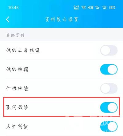 5.最后,往上滑动页面,找到“其他资料”下方的【匿问我答】功能,点击右侧的滑块关闭;