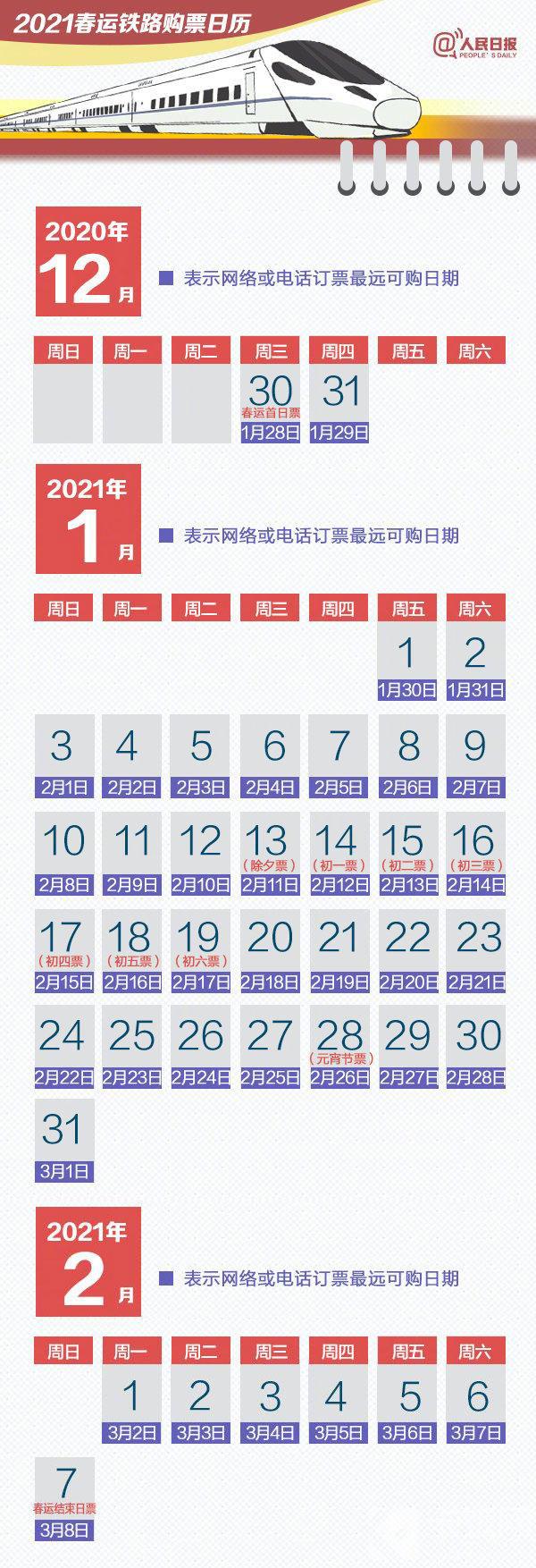 8、除夕(2021年2月11日):2021年1月13日开始抢票;