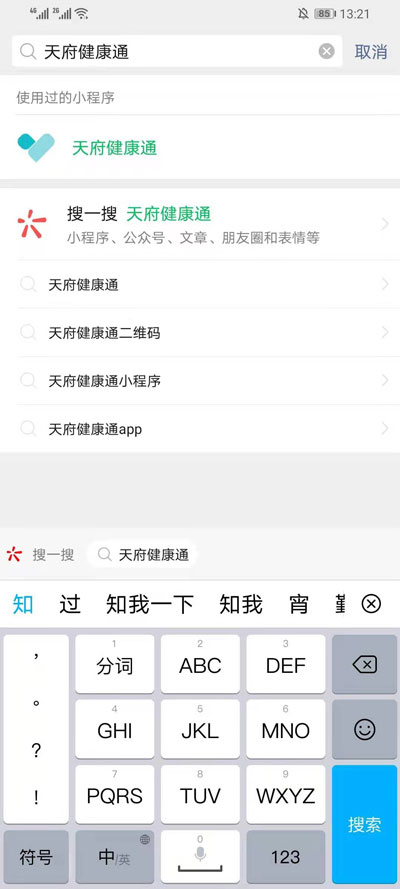 3、搜索到天府健康通后,我们点击进入到小程序中;