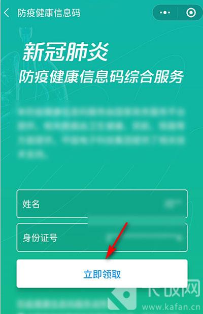 4、通过人脸识别认证之后,在领取页面,输入自己的姓名、身份证号,点击【立即领取】;