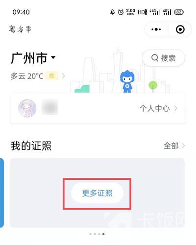 3.登录成功之后,在“我的证照”的下方,左右滑动卡片,找到最后方的【更多证照】;