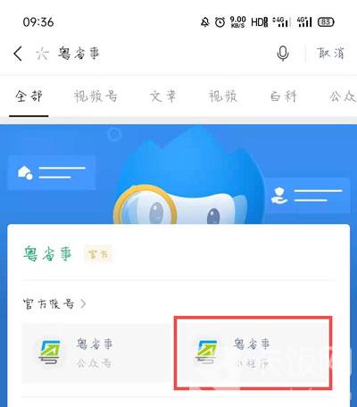 1.打开手机上的微信,点击搜索框,搜索【粤省事】小程序,点击进入;