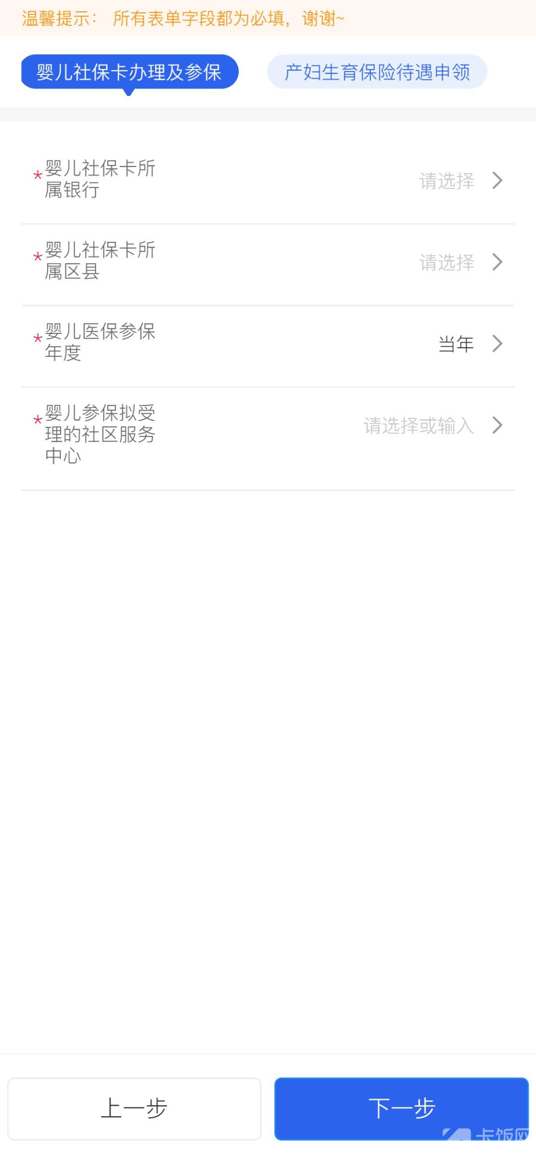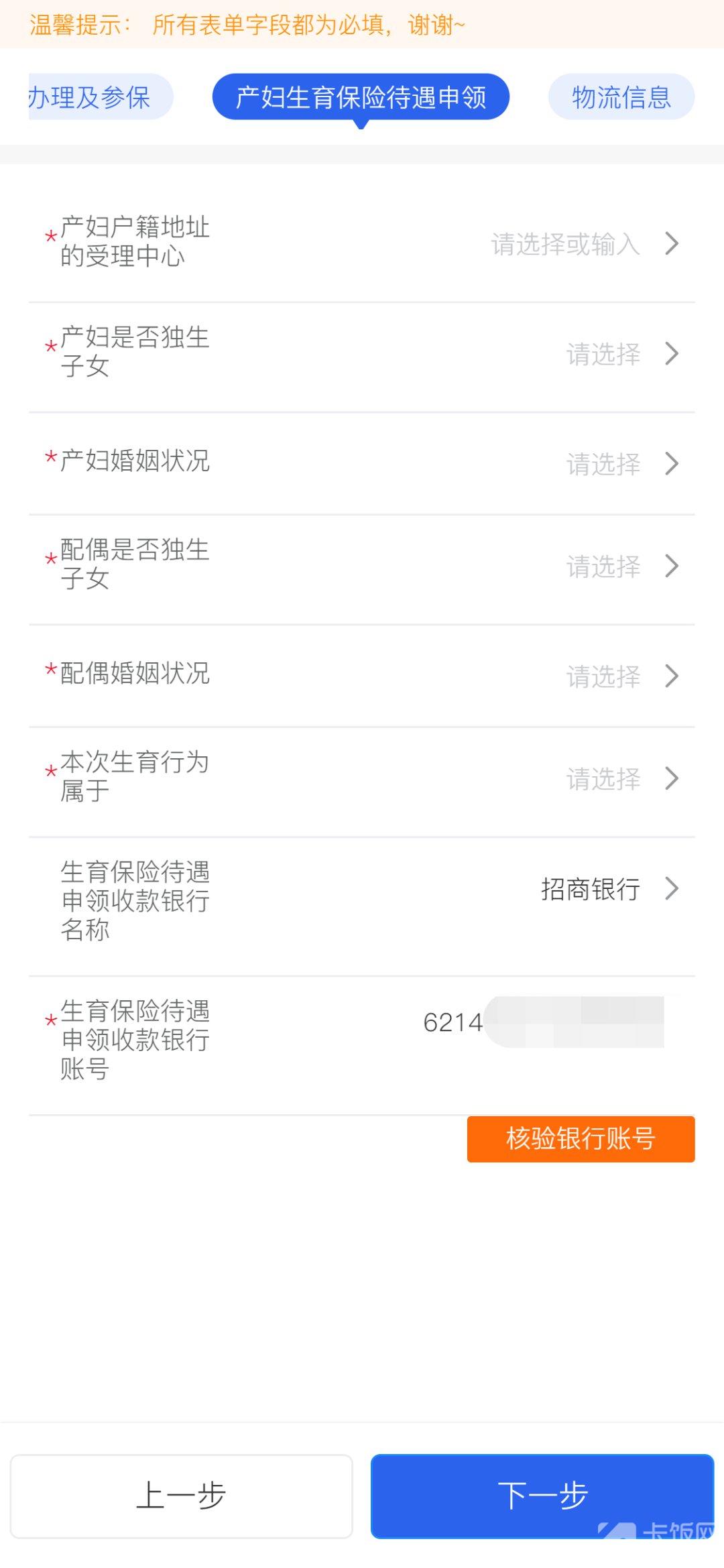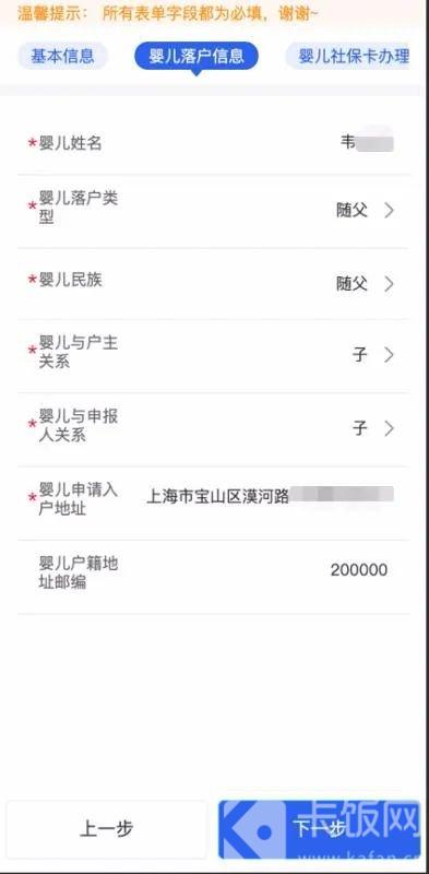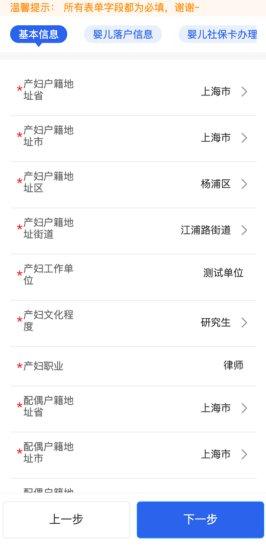 6、之后就是各种申请填报信息填写,包括个人信息、婴儿落户信息、婴儿社保卡办理等等;
