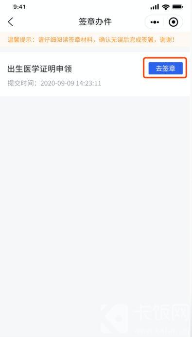 10、点击【去签章】后就可以领取了婴儿的电子出生证明了。