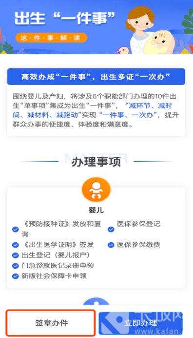 9、之后的步骤就需要婴儿的父亲,进入随申办的出生一件事办理页面,点击【签章办件】;