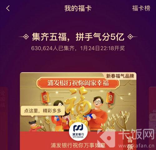 2.福卡的类型有爱国福/敬业福/和谐福/友善福/富强福,花花卡/沾福气卡/万能卡。