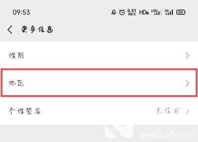 4、在更多页面,找到并点击【地区】设置,点击进入设置;