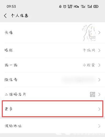 3、接着在个人信息设置页面,点击下方的【更多】一项,设置更多个人信息;